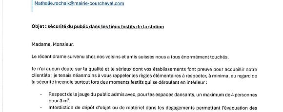 À la suite du drame intervenu dans un établissement de Crans-Montana, en Suisse, la commune a rappelé les consignes de sécurité incendie à respecter, en particulier lors des événements festifs se déroulant dans les établissements recevant du public.