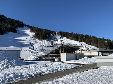 Les infrastructures se mettent en place au pied de la nouvelle piste de l'Éclipse qui accueillera les meilleurs skieurs et skieuses de la planète lors des épreuves de vitesse les 16 et 17 mars prochains.