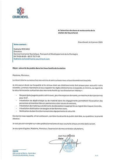 Retrouvez ici le courrier adressé aux bars et restaurants de la station, listant les principales règles, afin de placer la sécurité du public au rang de priorité absolue.